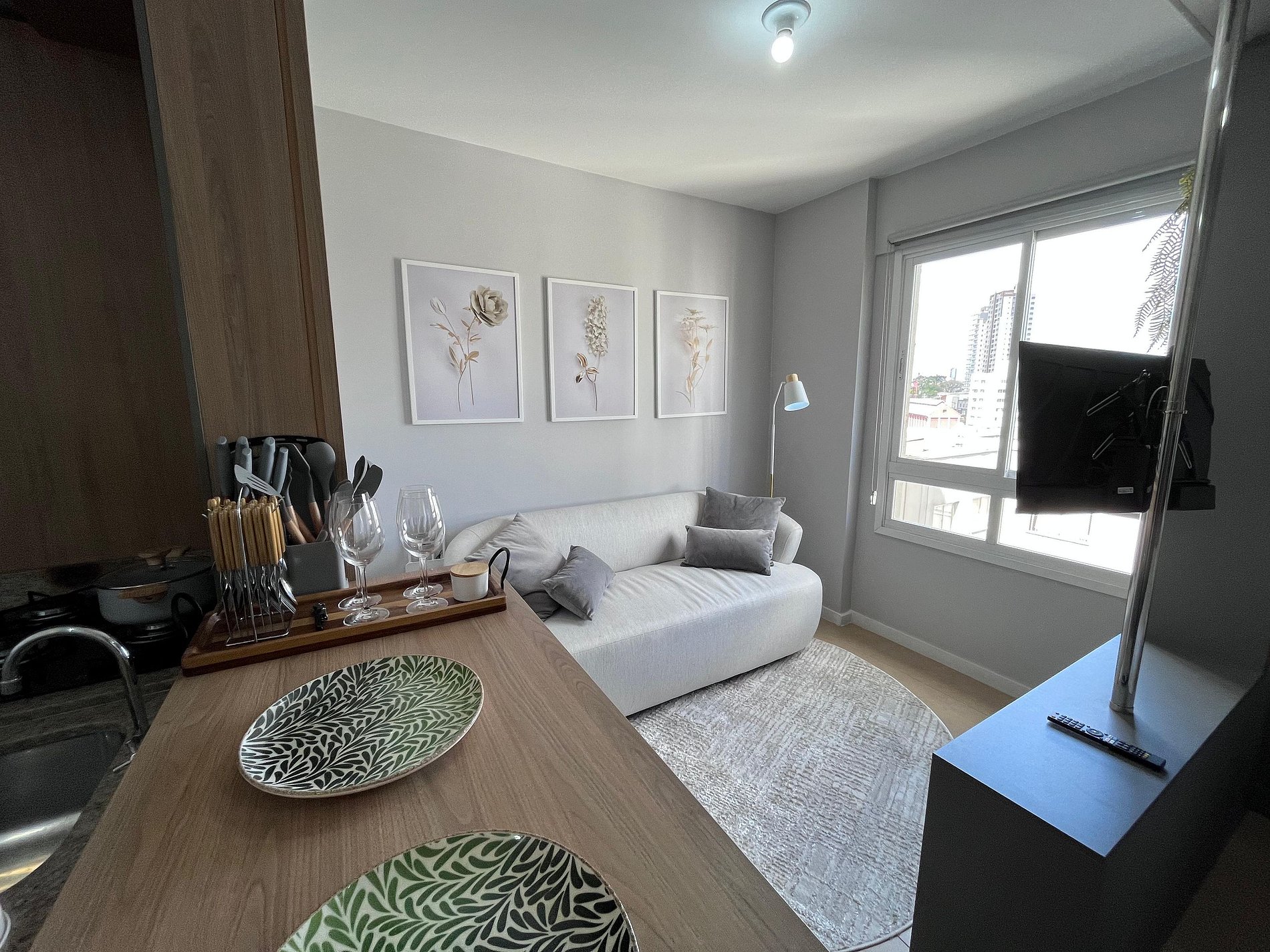 Aconchegante studio, super central. TV Smart com Wi-Fi em toda a acomodação. A cozinha equipada com todos os utensílios. Fica no 13º andar do edifício, excelente posição solar, iluminado e arejado. Possui vaga de estacionamento no edifício. Esse apartamento faz parte da MASTER COLLECTION, que reúne os melhores imóveis de hospedagem em Passo Fundo.