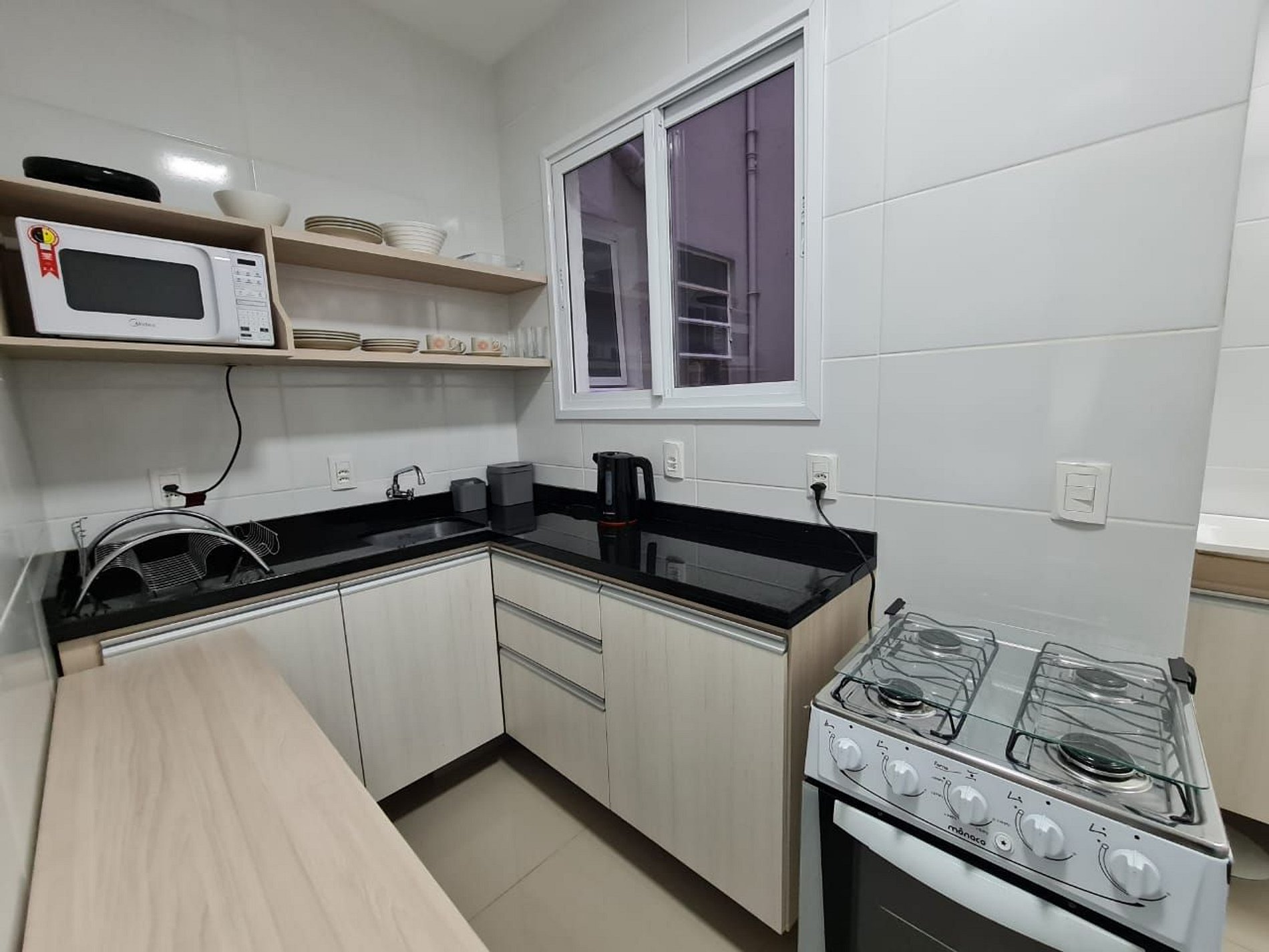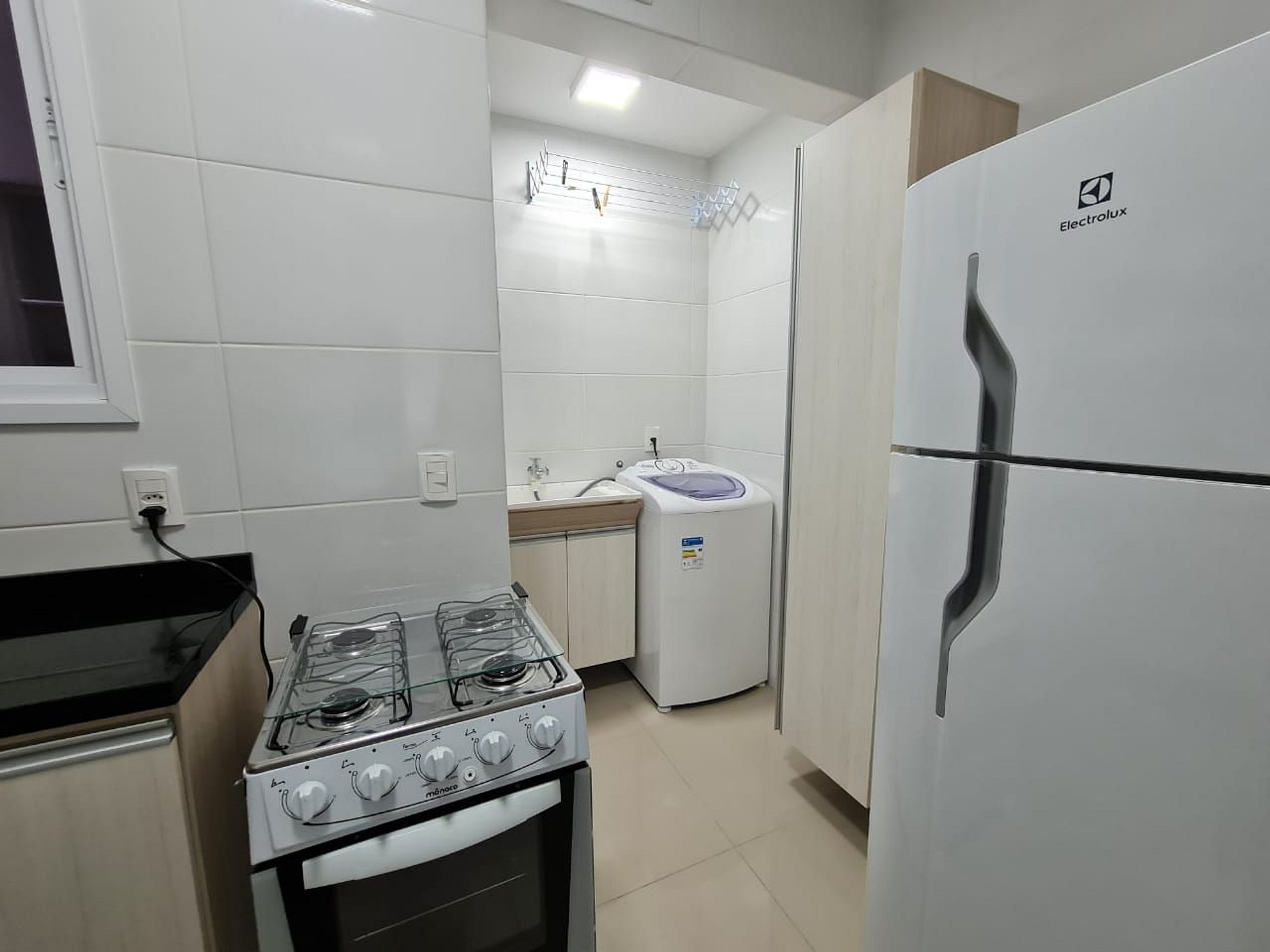 Possui todas as louças e eletrodomésticos.