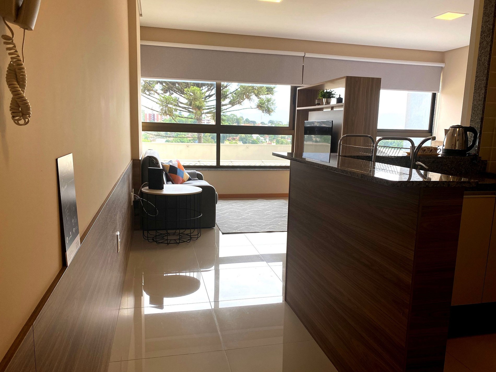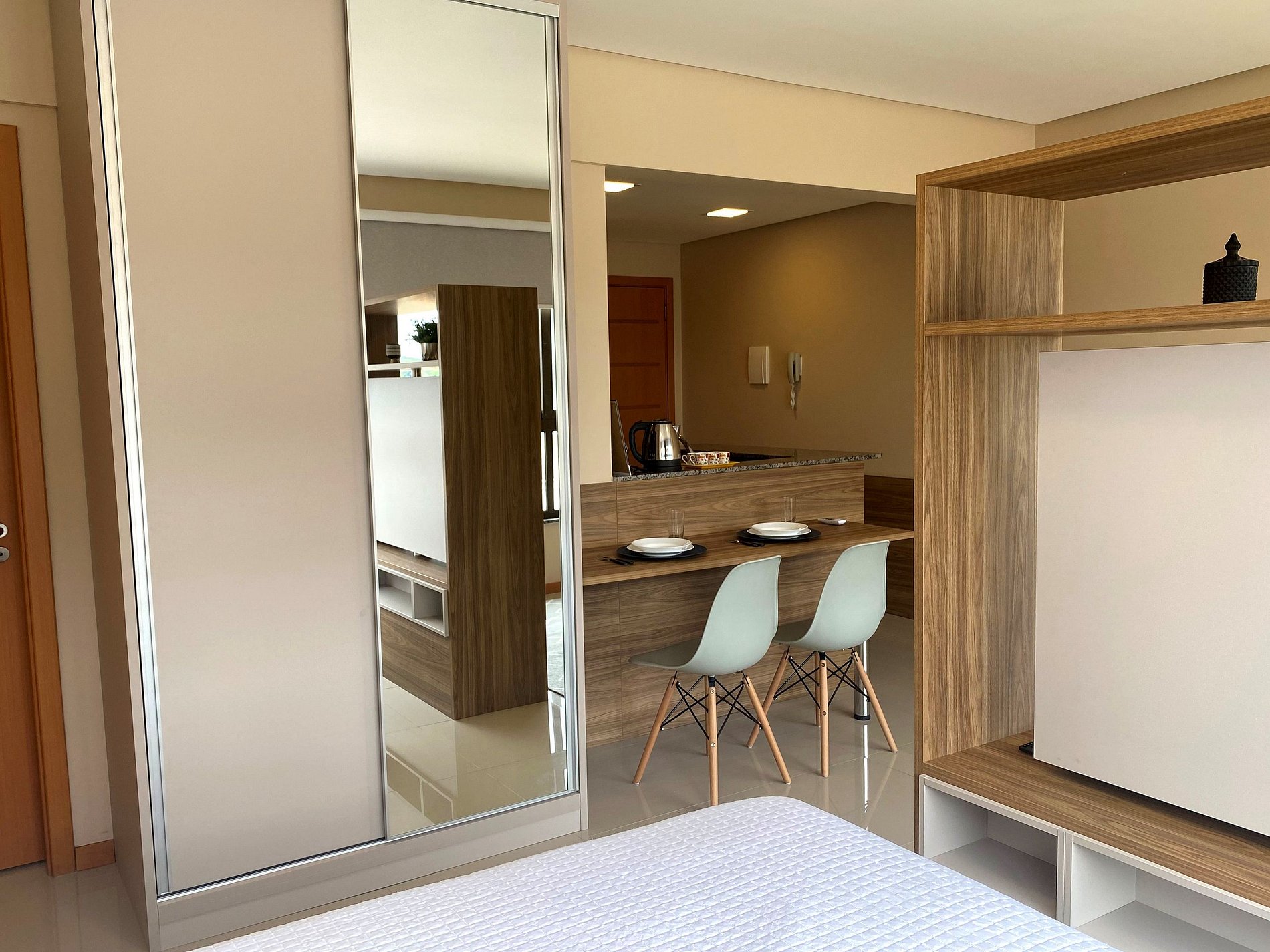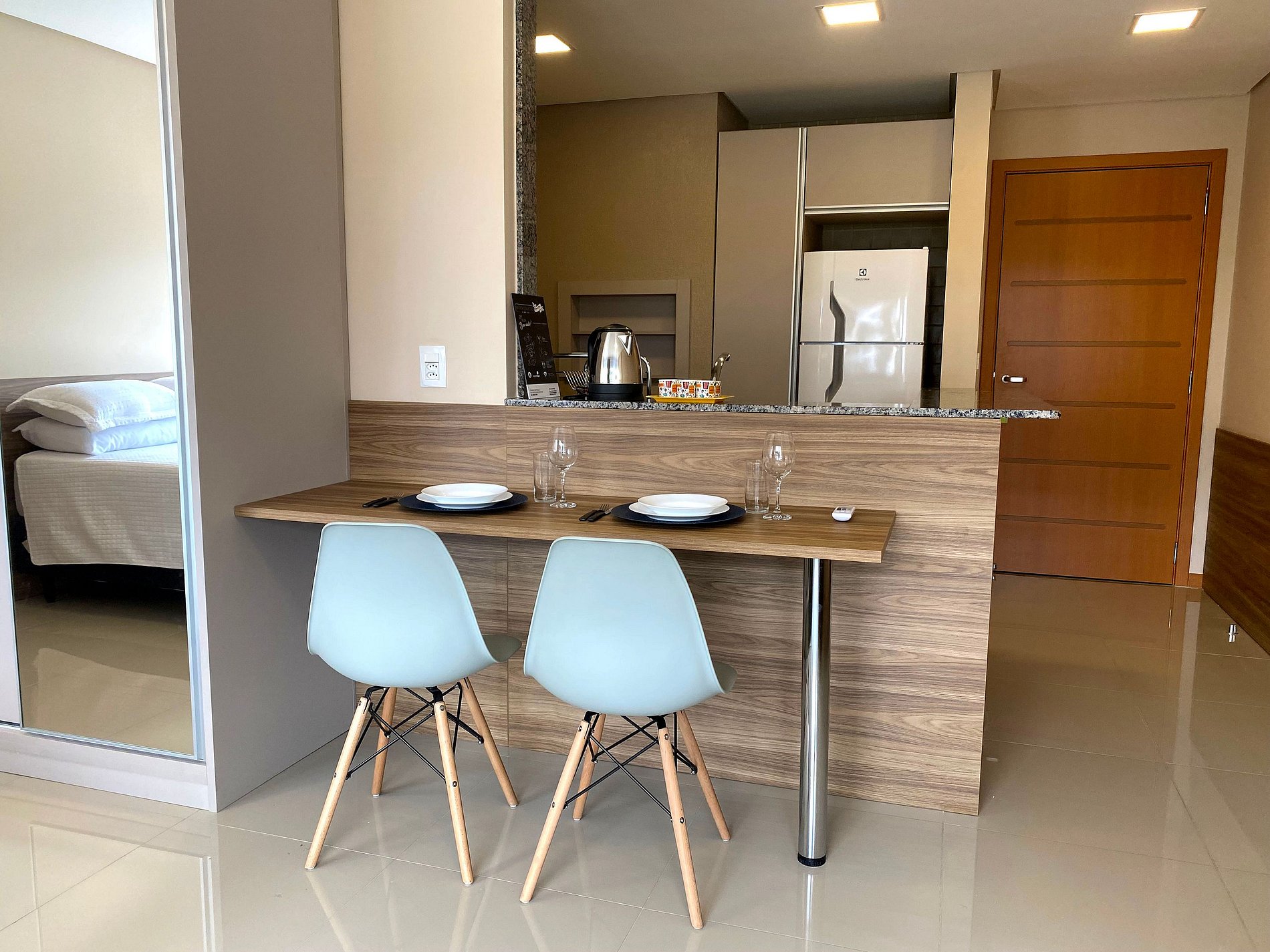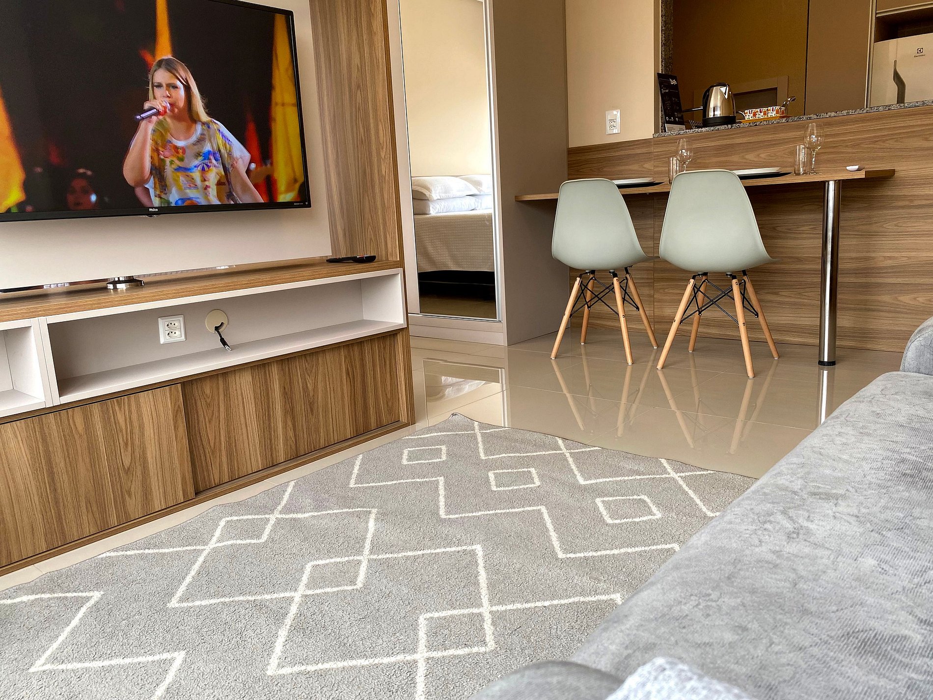 Aconchegante loft composto por um dormitório com cama box de casal e estar com sofá-cama. TV Smart com painel giratório. Wi-Fi em toda a propriedade. Fica no 2º andar, iluminado e arejado. Possui todos os utensílios para cozinha e churrasqueira. Disponibiliza roupas de cama, banho e guarda-roupa. O edifício possui elevador. Esse apartamento faz parte da MASTER COLLECTION, que reúne os melhores imóveis de hospedagem em Passo Fundo.
